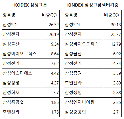 | 상품명 | KODEX 삼성그룹 | KINDEX 삼성그룹섹터가중 |