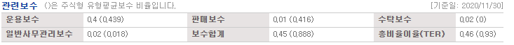 펀드보수는 0.45이며, 기타보수는 상장된지 1년이 안됐기 때문에 부정확 합니다.