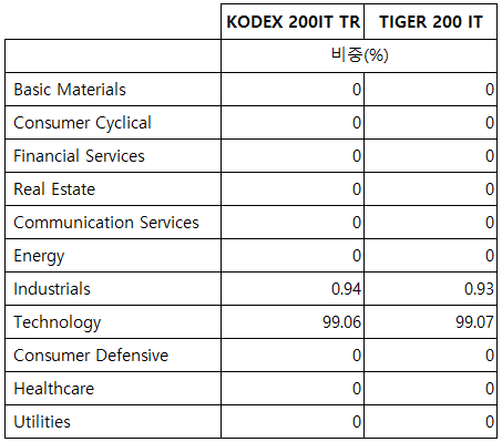 상품명 | KODEX 200IT TR | TIGER 200 IT |