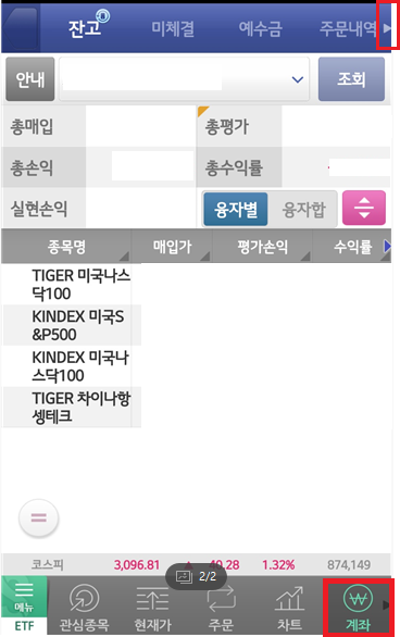 계좌로 들어가서 상단 주문내역 -> 쪽으로 메뉴를 이동합니다.