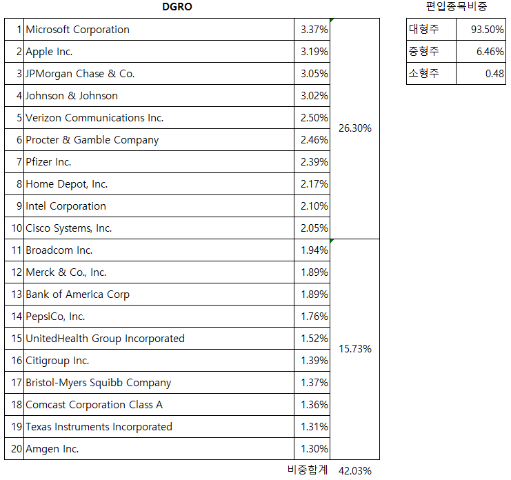 1. DGRO는 배당 성장에 초점을 맞춘 미국 주식에 대한 저비용 노출을 제공합니다.
