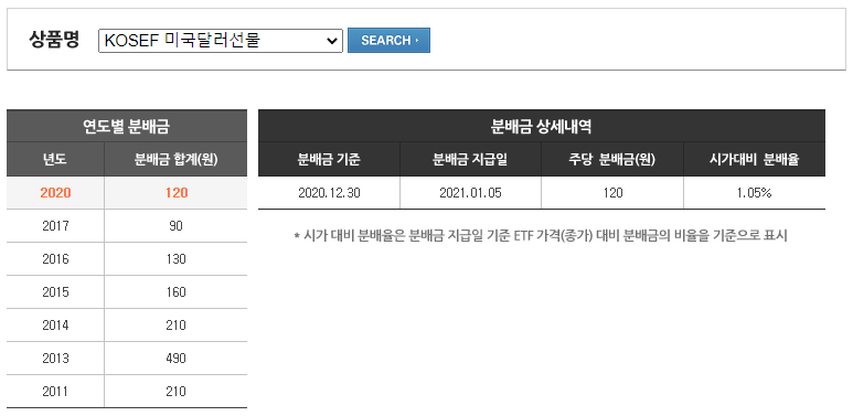 다만, KOSEF(코세프, 키움) 미국달러선물은 미정기적으로 분배금을 지급하고 있습니다.