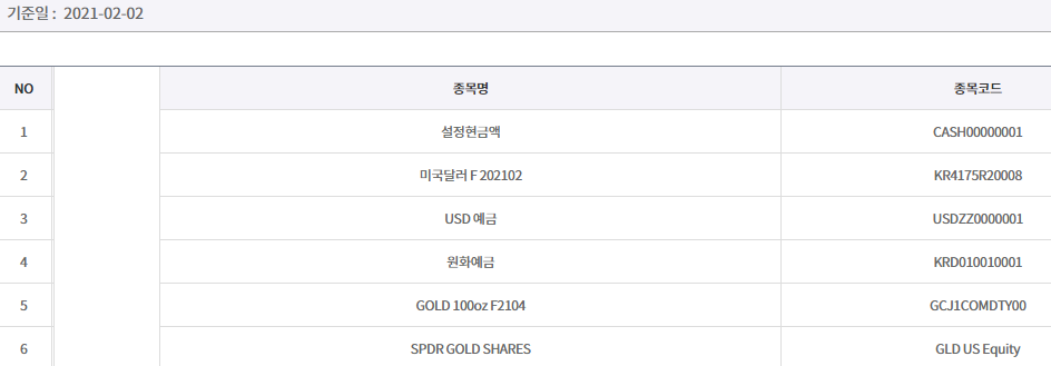 | 추종지수 | S&P GSCI Gold Index(TR) |