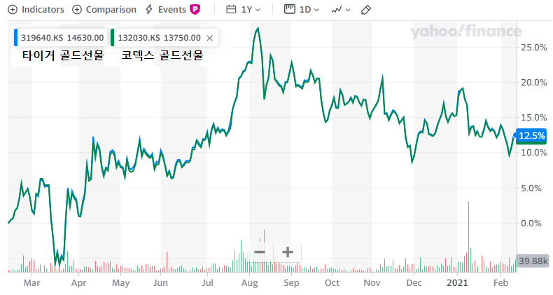 장기 투자시 운용보수가 낮은게 유리하기 때문에 TIGER(타이거) 골드선물(H)이 장기 투자시 더 적합 할 수 도 있습니다.
