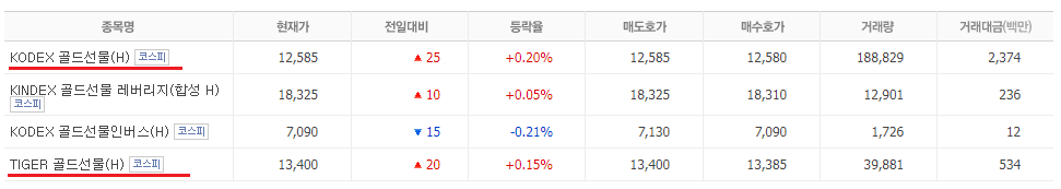 | TIGER(타이거) 골드선물(H) | 0.073 | 0.46 | 246개 |
