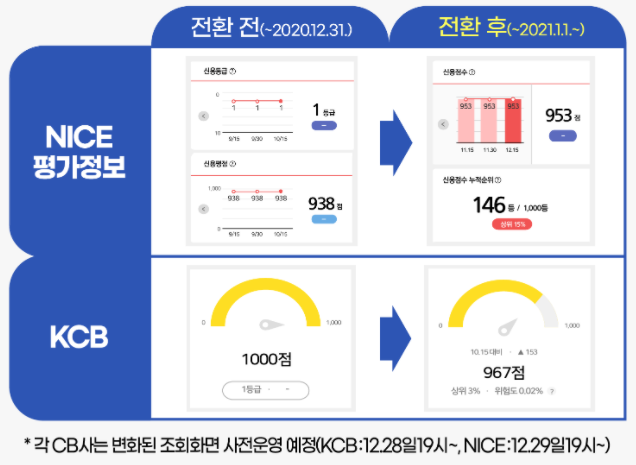 ■ 2021년 1월 1일 부터, 개인 신용평가 제도가 신용듭에서 신용점수제로 변환 됩니다.