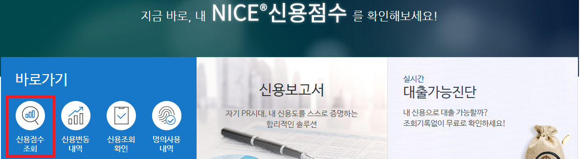 ▷ 위와 같이 각 신용평가 사이트로 들어가면 신용점수조회 메뉴를 확인할 수 있습니다.