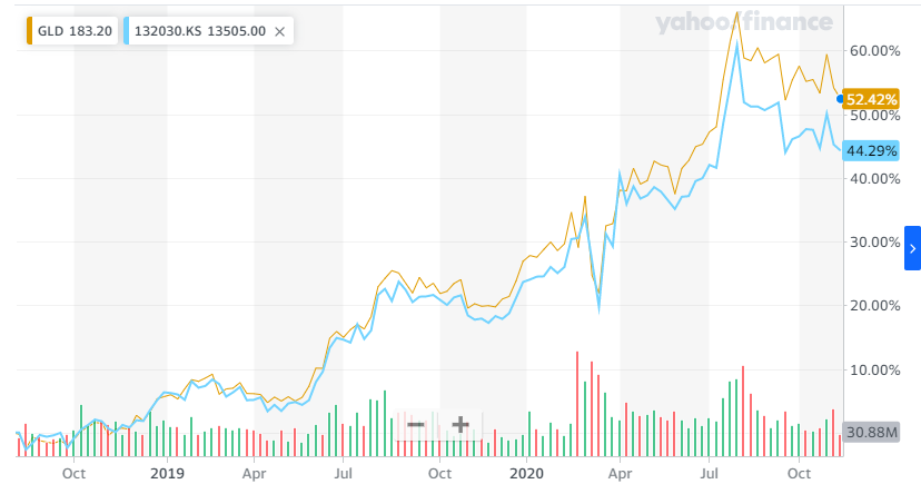 COMEX (미국 상품 거래소)에 상장되어 있는 골드선물 가격에 연동되는 ETF