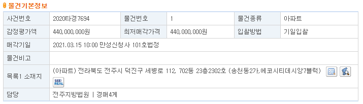 ■ 매각기일 2021년 3월 15일 전주 에코시티 데시앙 7블럭 경매가 나왔습니다.