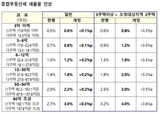 ■ 위표의 개정 부분이 2021년 적용되는 종부세율입니다.