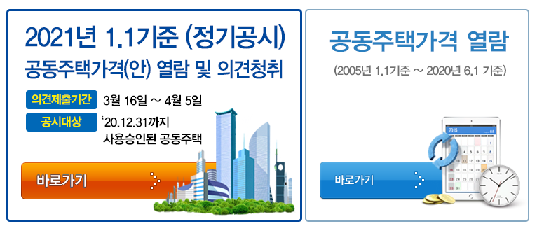 ■ 공동주택 공시가격 메뉴를 통해 2021년 공동주택가격안을 열람 하실 수 있습니다.
