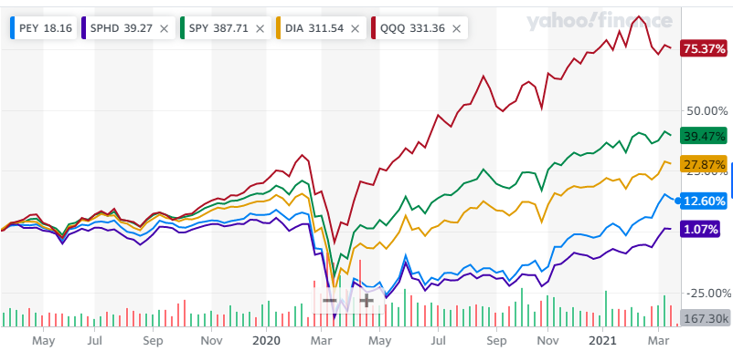 PEY가 SPHD보다 회복이 빠르고 수익률도 좋은 편입니다.