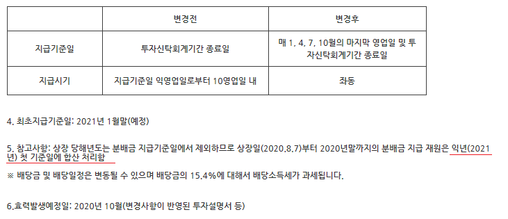 | 분배금 지급기준일 | 미지급, 재투자 |