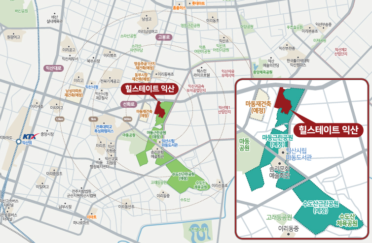 힐스테이트 익산 인근으로 마동 재건축 지역주택조합, 영등 주공 1단지 재건축, 동부시장 재건축등이 진행 될 예정입니다.