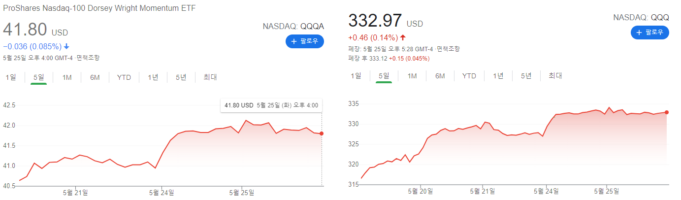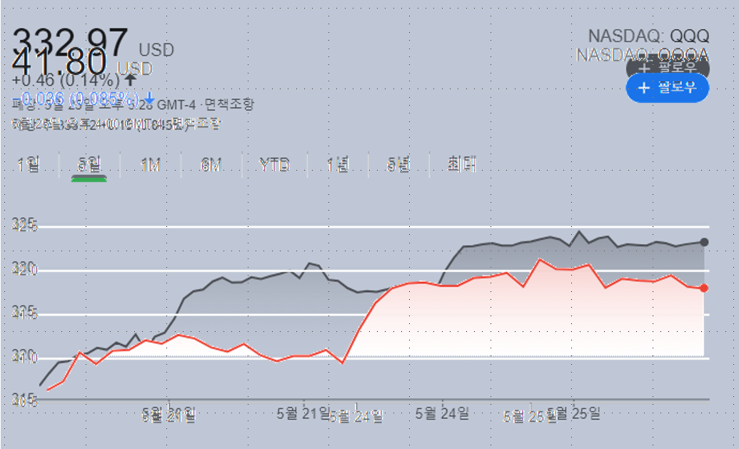 출시된지 얼마 안되 데이터가 아직 없습니다. QQQ와 비교해 보면 지금 시장 변동성 때문인지 QQQ보다 변동성이 좀 큰거 같습니다.
