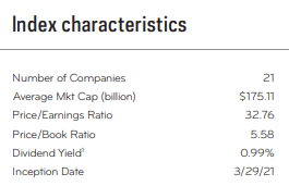 특히, 지수관리 기업인 Dorsey Wright 의 독점적인 상대 강세신호(“Relative Strength” signal.)를 바탕으로 나스닥 100지수에서 21개 종목을 선정한다고 말하고 있습니다.