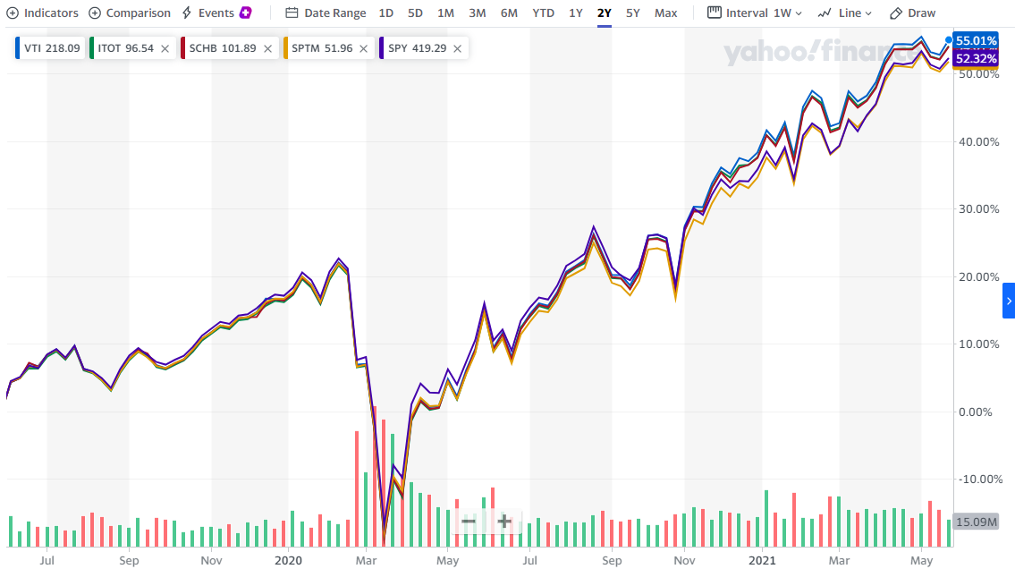 | VTI | ITOT | SCHB | SPTM | SPY | |
