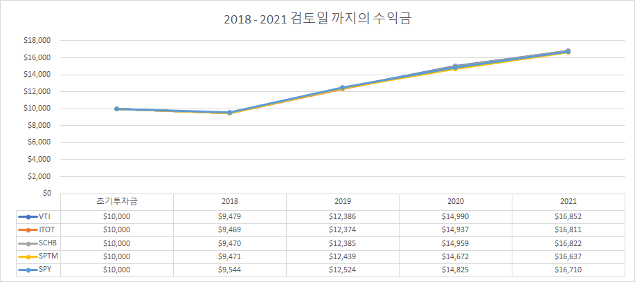 VTI, ITOT, SCHB, SPTM 모두 거의 비슷합니다.