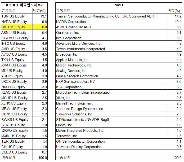 | 상품명 | KODEX 미국반도체MV | SMH |