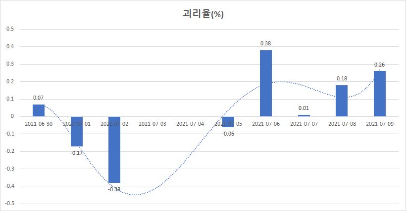 상장이후 일별괴리율 입니다. ±2% 안에만 들어가면 되기 때문에 그렇게 나쁜편은 아닙니다.