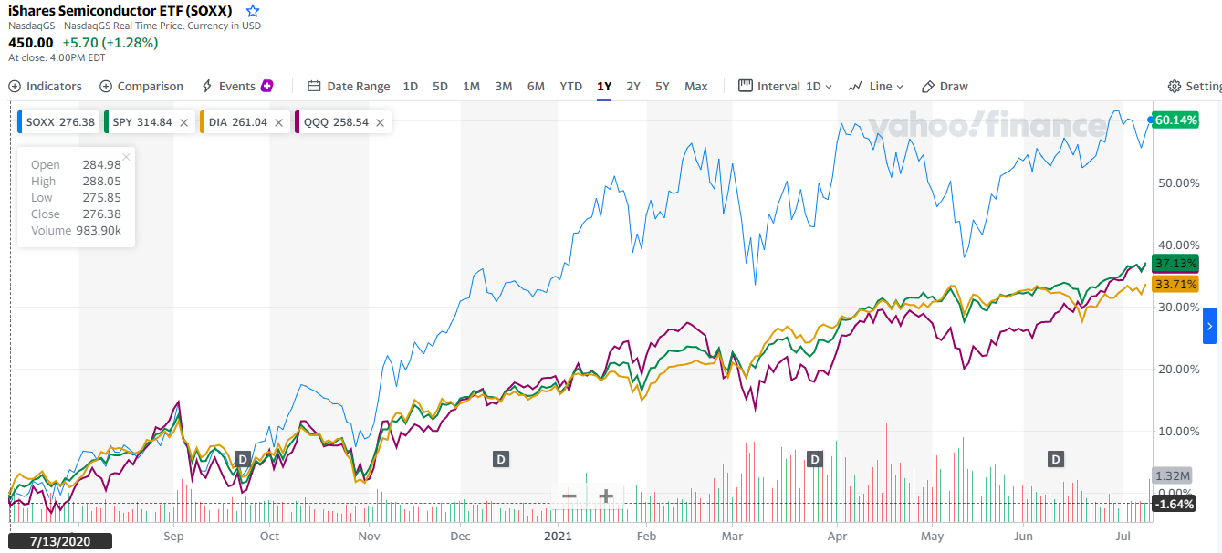 | SOXX | 5.10 | 7.26 | 20.16 | 69.17 | 38.24 | 38.74 | 24.93 |