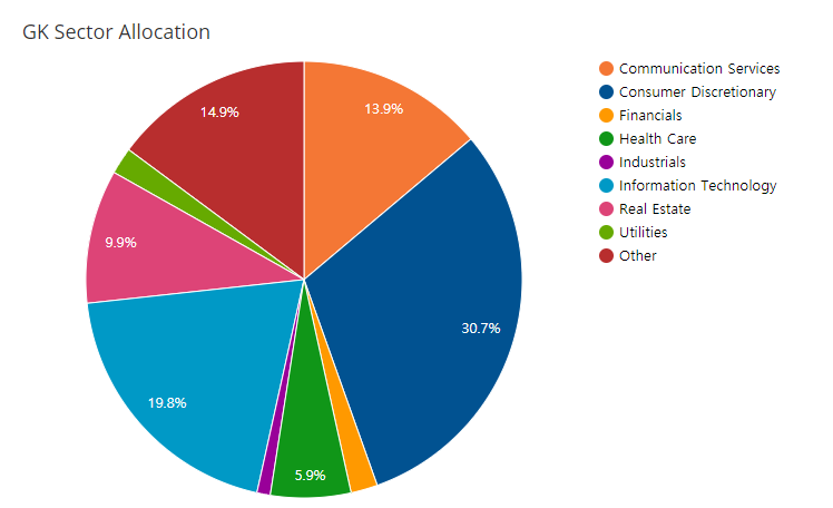 국내에 잘 알려진 ARKK ETF와 비교해 보면 ARKK는 미래의 혁신이라는 주제를 가지고 운용된 반면 GK는 장기 거시적 관점을 가지고 성장중심 포트폴리오에 투자합니다. 한마디로 장기적으로 눈에 보이는 효과를 가진 성장중심의 포트폴리오에 투자하겠다는 말입니다.