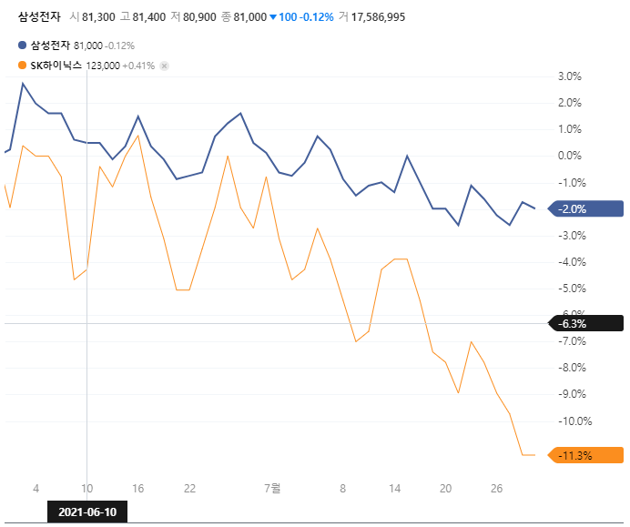 상위 비중을 삼성전자로 가져가느냐 아니면 SK하이닉스로 가져 가느냐가 투자자님의 선호도에 따라 종목을 선택하시는 기준이 될 수 있을 것 같다고 생각됩니다.