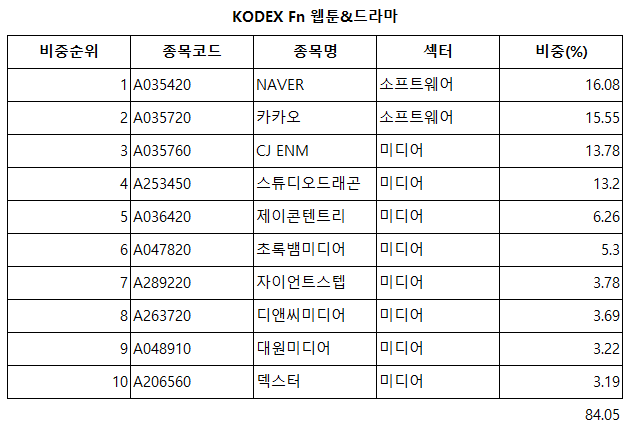 | 상품명 | KODEX Fn 웹툰&드라마 |