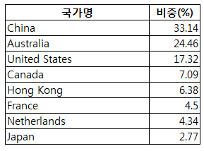 중국이 높은 비중으로 포함되어 있습니다.