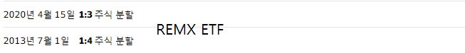 REMX ETF는 2013년, 2020년에 주식분할을 했습니다.