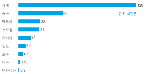 중국은 희토류(Rare Earth) 관련하여 세계 최대 규모를 자랑합니다.