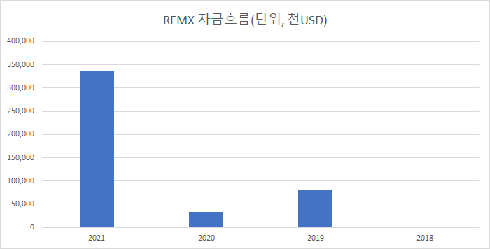 하지만, 이는 과거의 결과이며 현대기기에 사용되는 희토류, 리튬등은 앞으로 REMX ETF에 어떤 결과를 미치게 될 지는 아무도 알 수 없습니다.