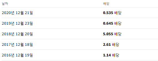 분배금은 1년에 한번 12월에 지급합니다. 분배금율은 일정하지 않지 않습니다. 따라서, 분배금에 큰 기대를 하지 않는 게 좋을 것 같습니다.