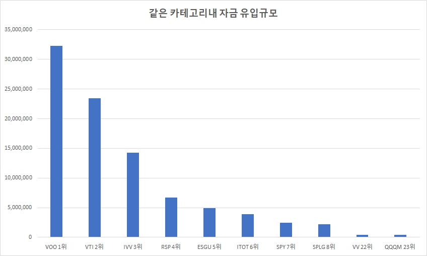 검토일 기준 같은 카테고리내 22위의 자금유입규모를 보이고 있으며, 나쁘지 않은 규모입니다.