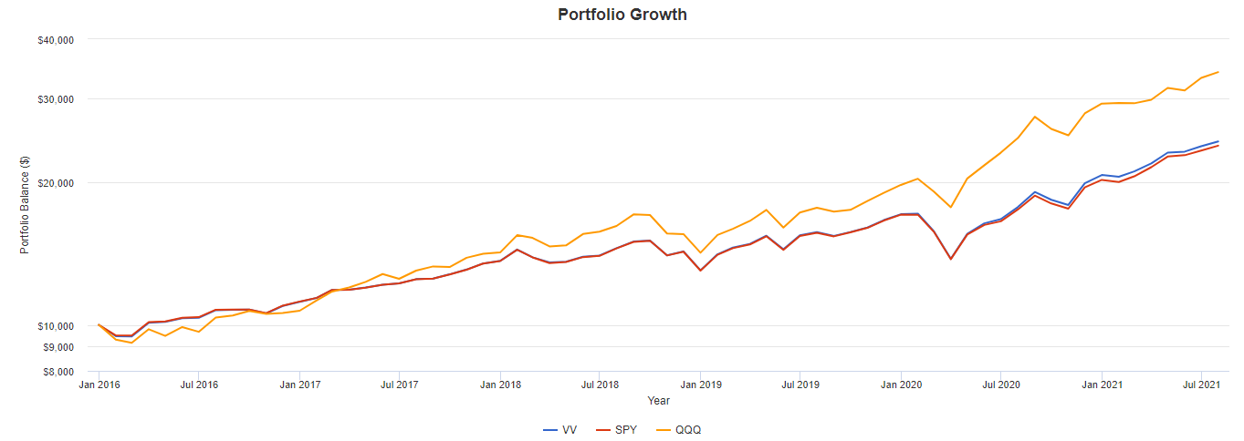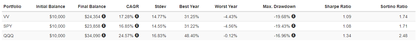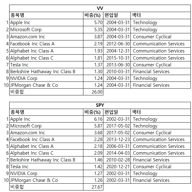 VV나 SPY 모두 같은 벤치마크지수를 사용합니다.
