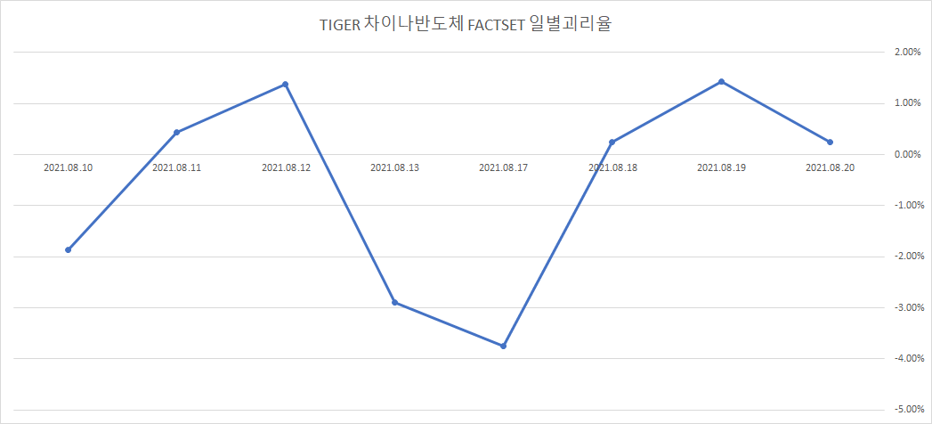 국유기업으로 핵심산업에 해당하는 반도체 종목들이 거래 제한을 받으면서 TIGER 차이나반도체 FACTSET에도 악재로 작용할 수 있습니다.