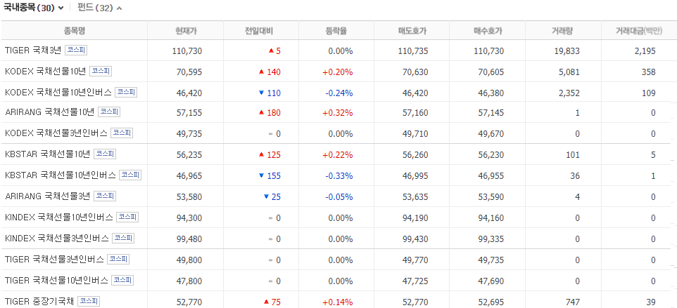 | ARIRANG 국채선물3년 | 0.32 | -0.10 | -0.22 | 6.26 |