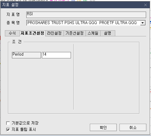 RSI 지표설정 창입니다.