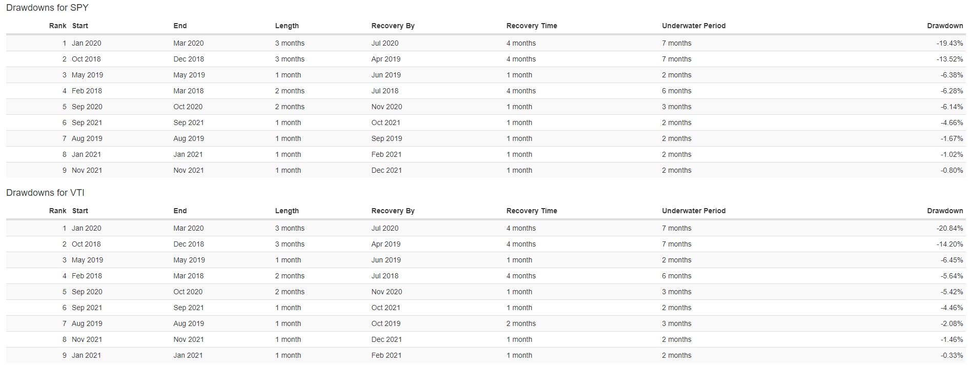 2019년 8월 SPY -1.67% 하락, VTI -2.08% 하락 하고 회복하는 SPY 1개월 VTI는 2개월이 걸렸습니다.