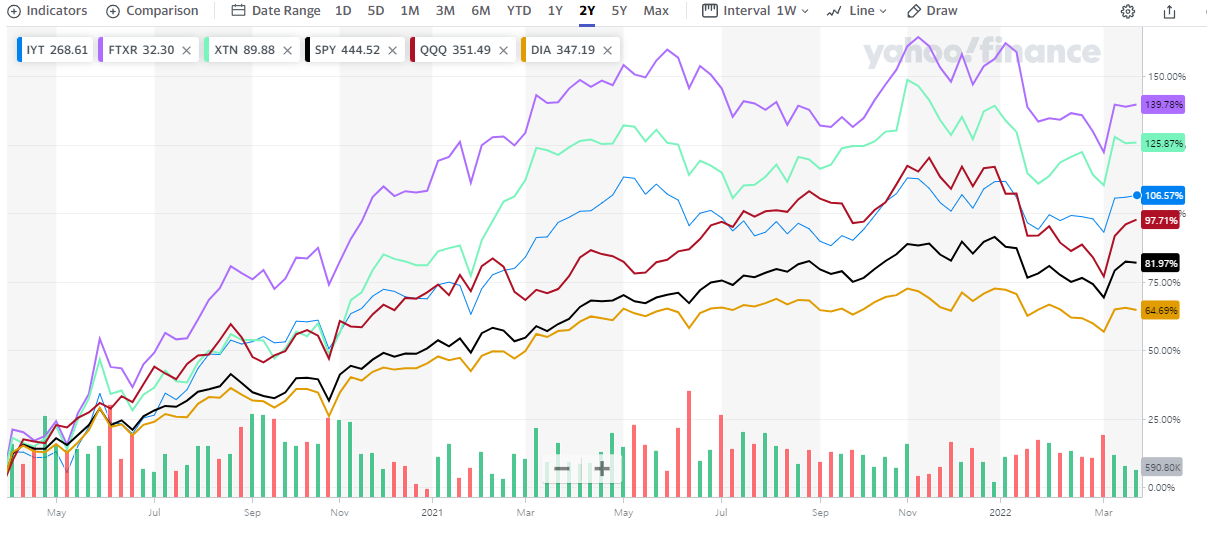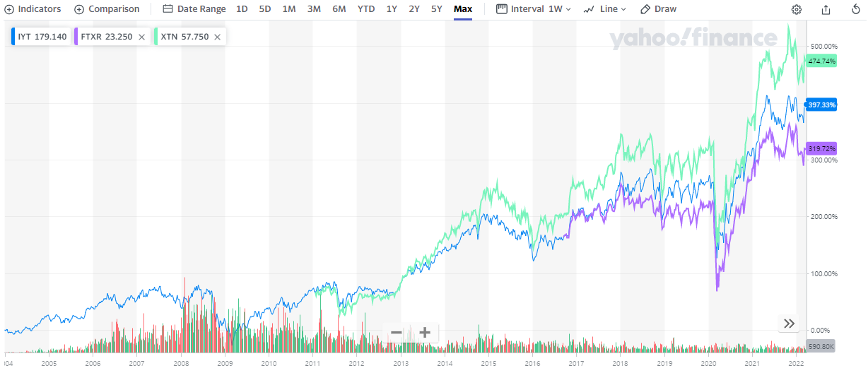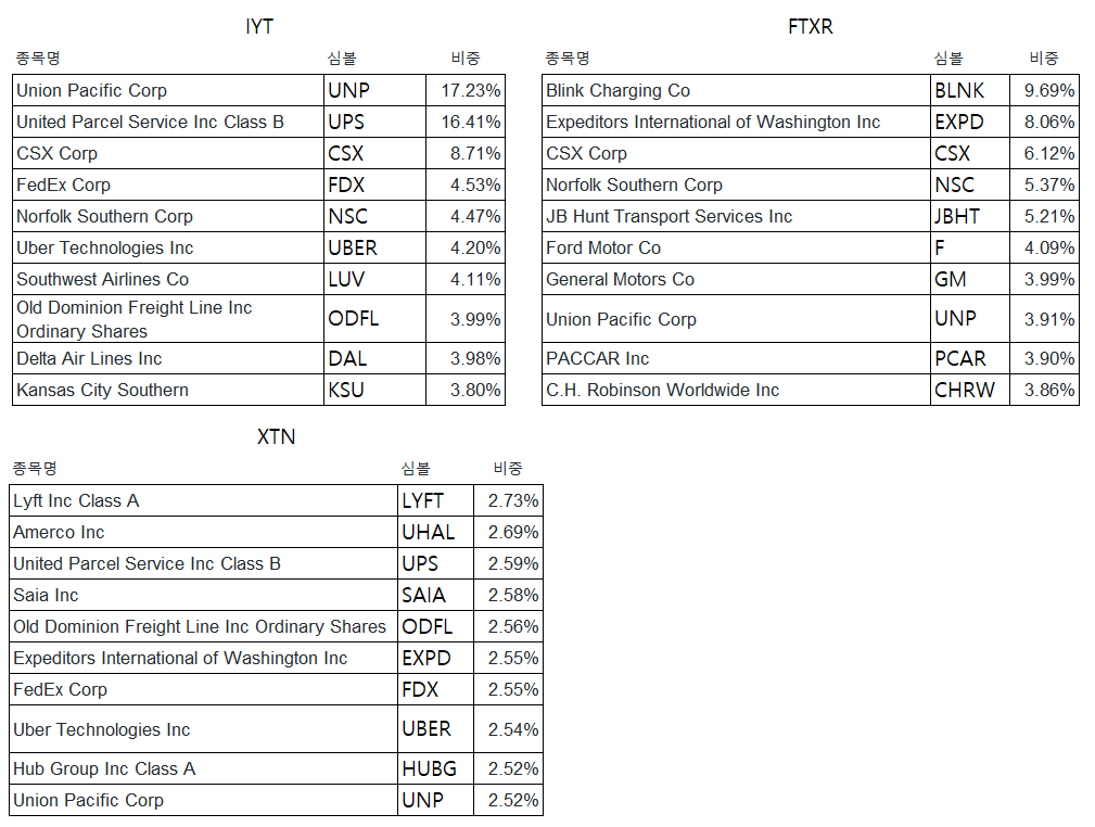 IYT, FTXR, XTN ETF는 광범위한 미국 운송산업에 투자하는 ETF 입니다.