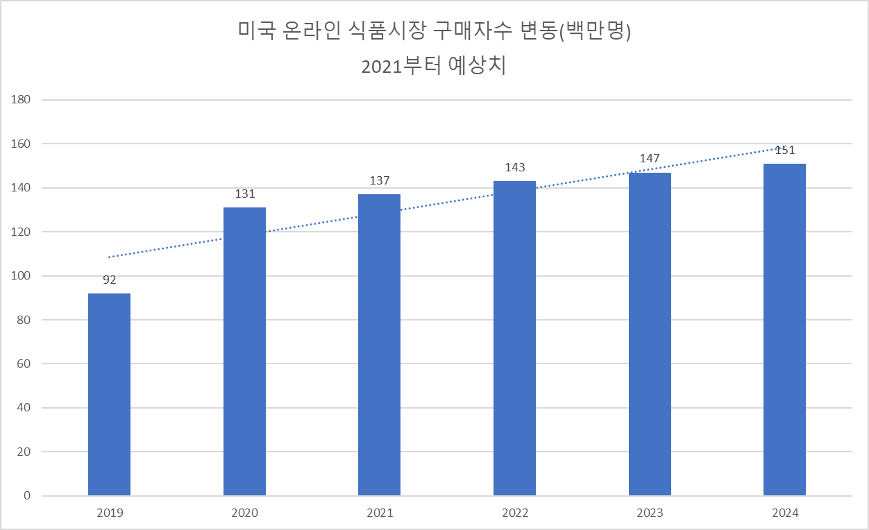 과거 자료이긴 하지만, 예측은 2021년 부터 온라인 시장 구매자 변동을 증가로 예상 했으며, 실제로 코로나 이 후 온라인 사용자수가 증가했습니다.