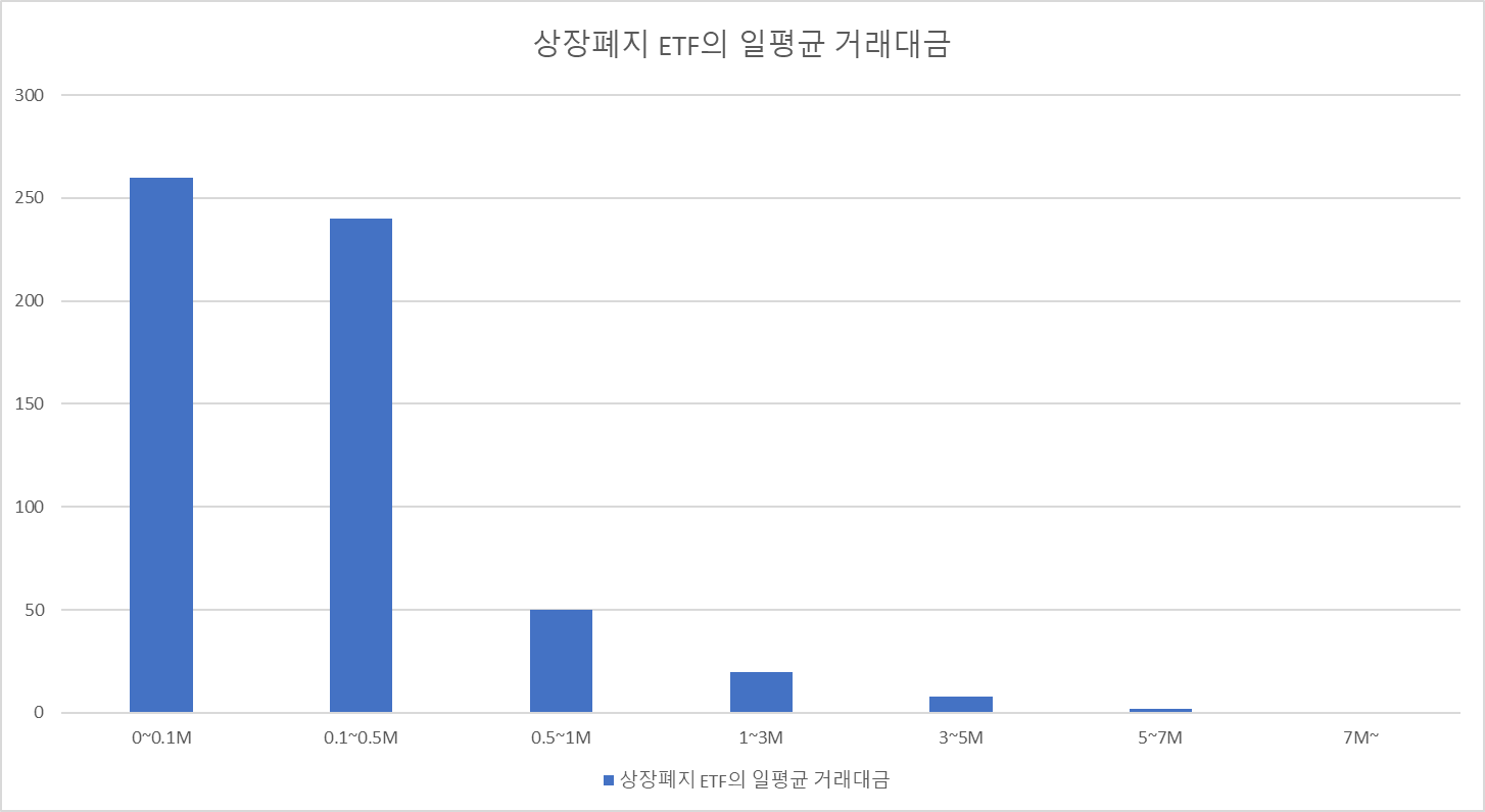 관리자산과 일평균 거래대금이 낮으면, 이익이 없기 때문에 지속 운용할 이유가 없어 운용사가 상장폐지를 합니다.