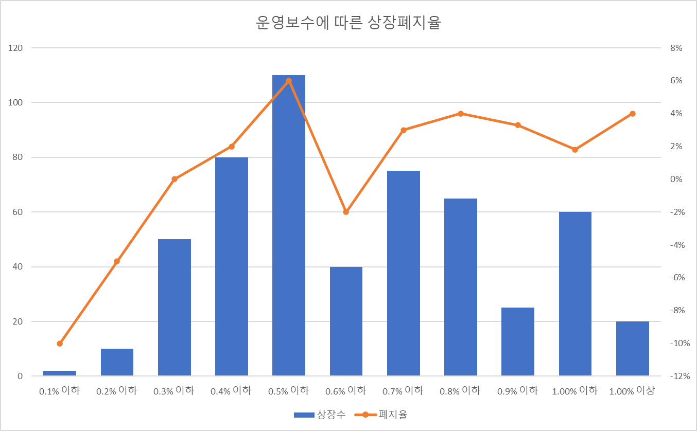 따라서, 운영보수가 높은 상품은 상장폐지율이 높을 수 있습니다.