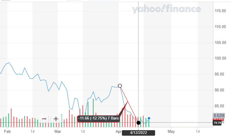 예로 최근 하락이슈를 보인 미국의 스타벅스(starbucks, SBUX)를 보도록 하겠습니다.
