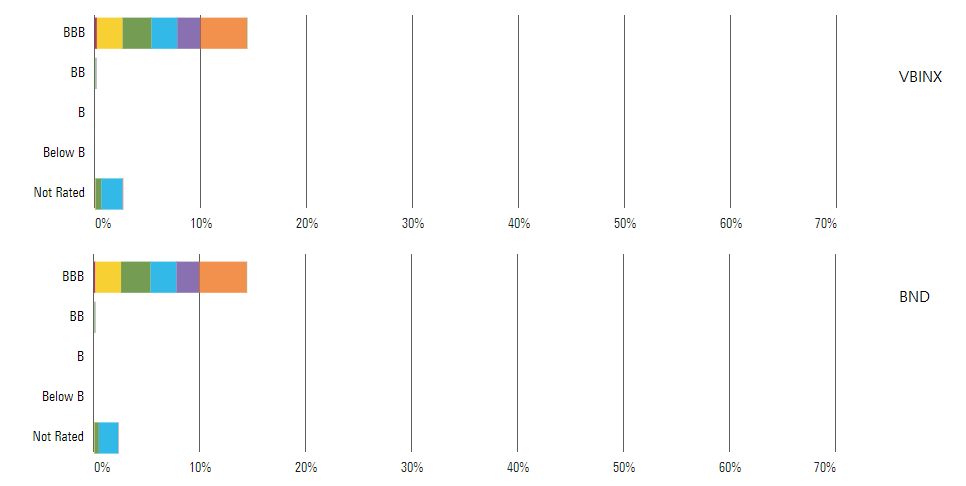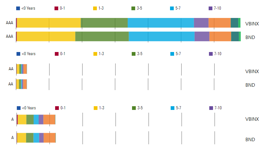 VBINX와 BND의 AAA등급채의 비율이 조금 다를뿐 나머지는 거의 동일 합니다.