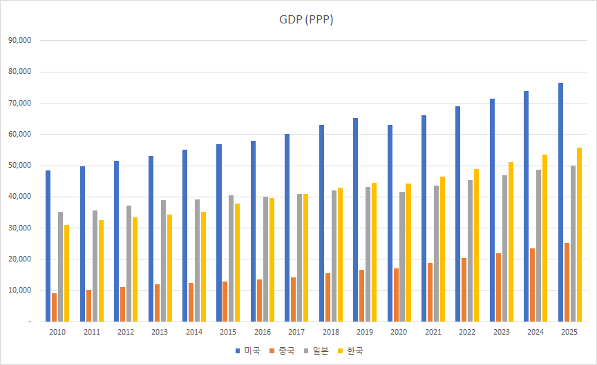 1인당 구매력 평가(PPP)는 한국이 일본을 앞지르고 있습니다.