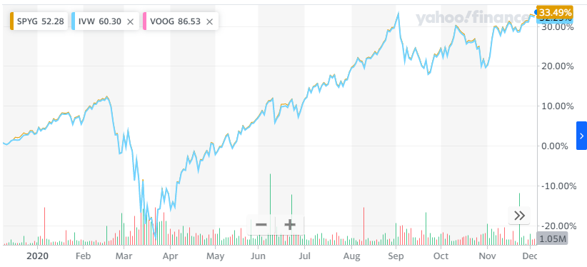 SPYG, IVW, VOOG는 거의 같은 움직임을 보이고 있습니다.