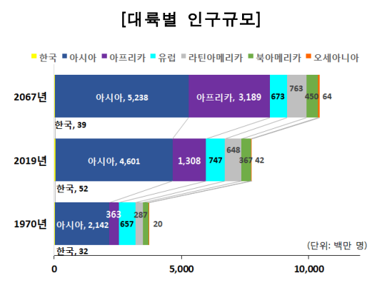 인구는 생산력, 소비와 관계되며, 선진국이 많이 있는 유럽 지역의 인구는 감소, 신흥시장인 아시아와 아프리카등의 인구는 앞으로 증가가 예상됩니다.