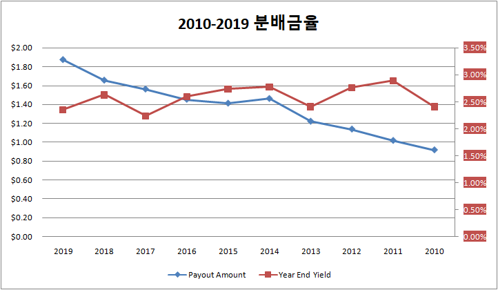 분배금은 코로나로 인해 2019년엔 2.35%, 2020년엔 약 2.02%로 감소 하였습니다.