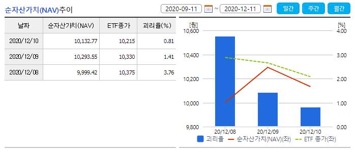 중국본토 거래소는 오전 9시~10시30분(개장전), 오후 12시30분 ~ 2시(점심시간 휴장)에 열리지 않으며, 유동성공급자(LP)의 업무가 제한되므로 높은 괴리율을 보일 수 있습니다.